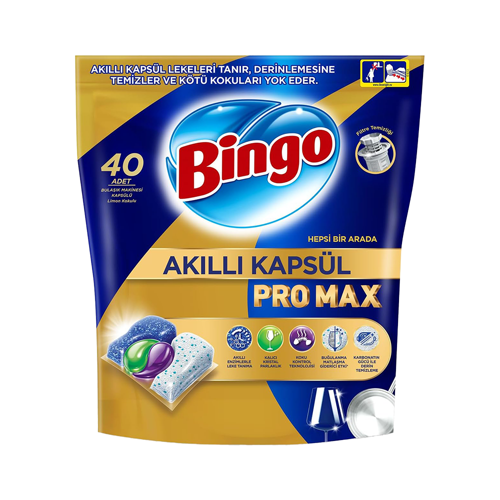 Bingo Pro Max Akıllı Kapsül Bulaşık Makinesi Deterjanı (40'lı)